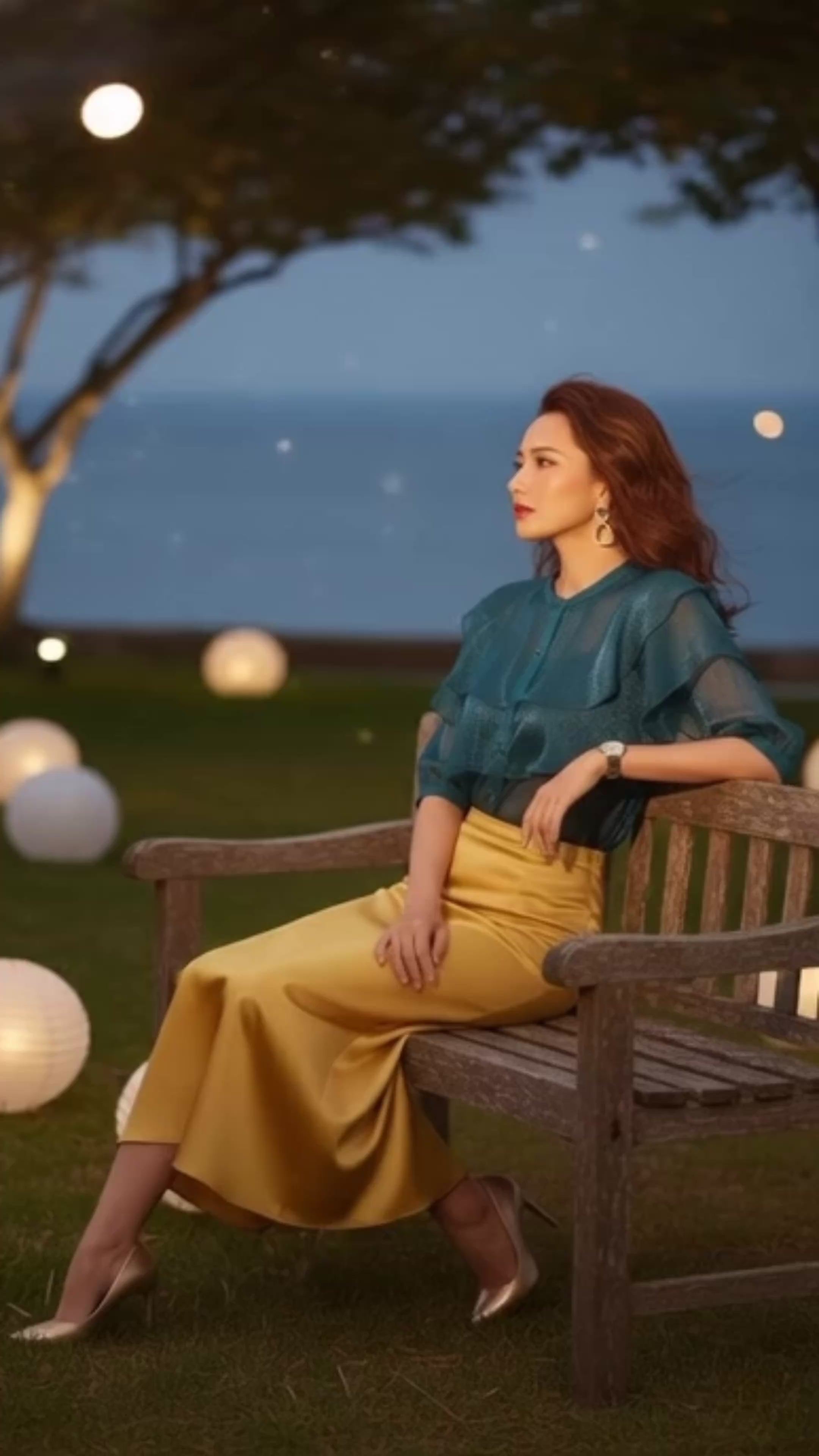 Mỗi chi tiết đều như được chọn đúng chỗ: vạt váy chạm gió, chất vải trượt nhẹ trên da, đường may tinh tế nâng niu dáng vóc. Nhưng điều khiến mọi ánh nhìn dừng lại chẳng phải là trang phục. Chính là cách ta bước đi, không vội vàng, không phô bày, chỉ cần hiện diện là đủ.